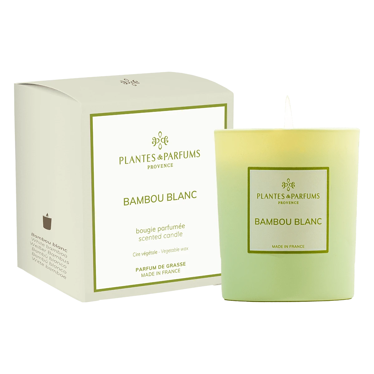 La Bougie Végétale Parfumée Bambou Blanc délivre un parfum doux et frais qui associe harmonieusement des notes de Bambou, de Nénuphar et d’Aloe Vera pour une ambiance zen.