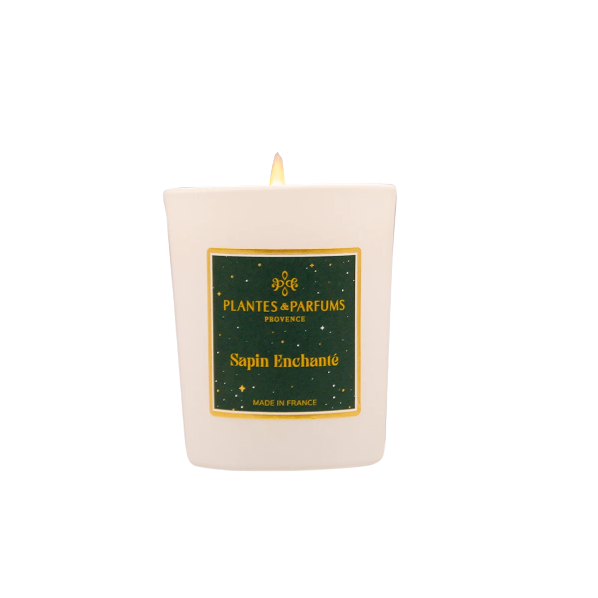 Créez une ambiance chaleureuse et parfumée en allumant la bougie à la cire végétale Sapin Enchanté.