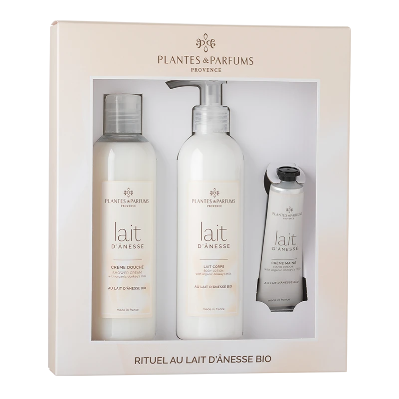 Ce Coffret au Lait d’Ânesse réunit les indispensables pour votre Rituel bien-être :