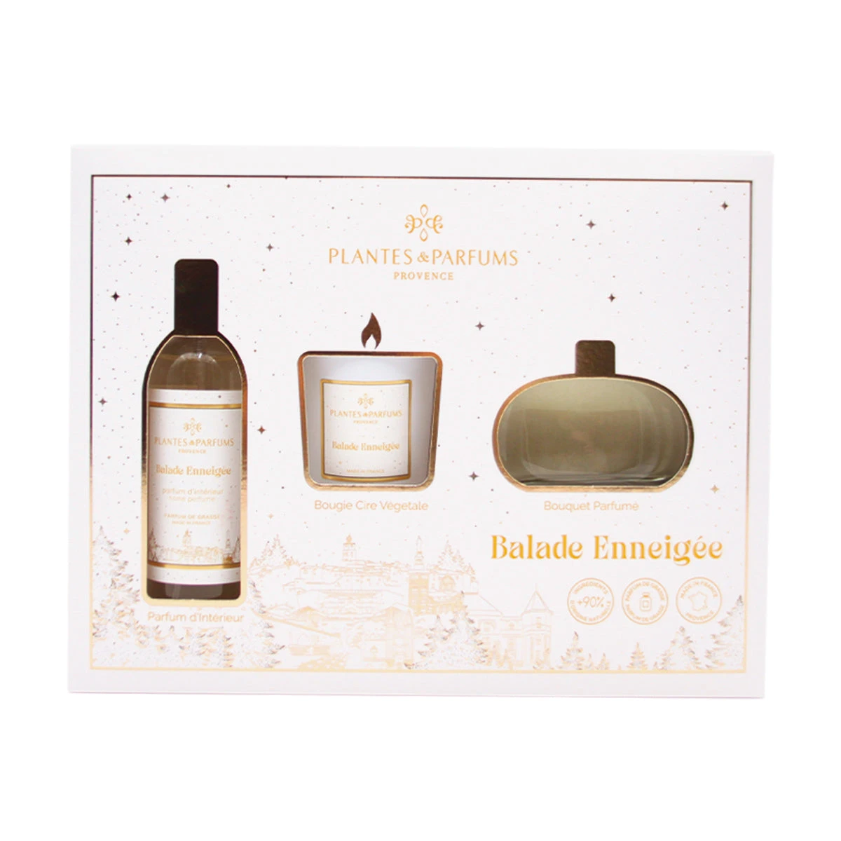 Ce joli coffret réunit les indispensables pour parfumer avec délicatesse sa maison : une Bougie Végétale 70 g, un Bouquet Parfumé 100 ml et un Parfum d’Intérieur 100 ml.