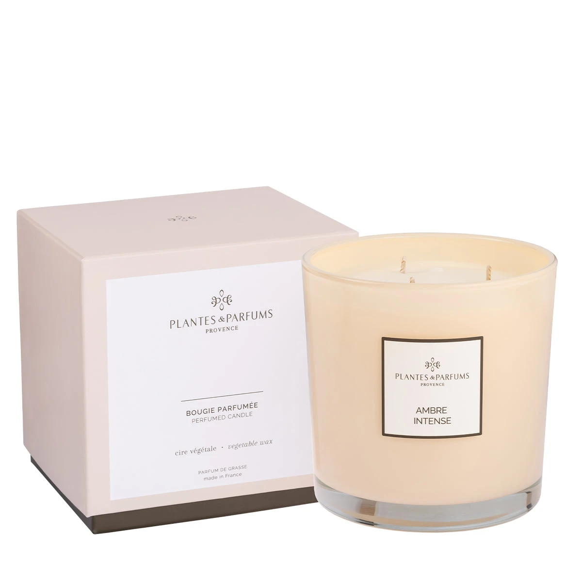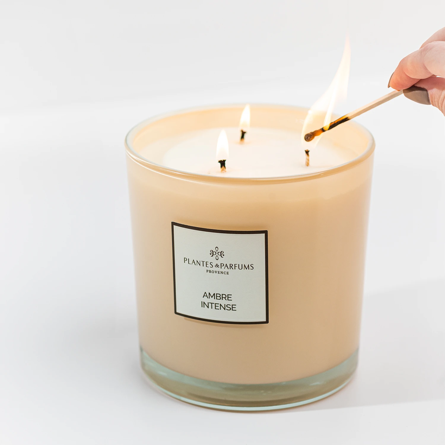 La Grande Bougie Végétale Parfumée Ambre Intense associe des notes chaudes et précieuses d’Ambre Royal. L’orient omniprésent se décline en une invitation olfactive à la douceur et à la volupté.