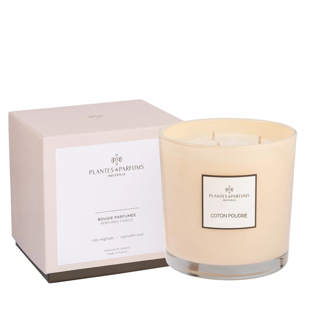 La Grande Bougie Végétale Parfumée Coton Poudré est une ode à la délicatesse. Son parfum envoûtant de Fleur de Coton, se mêle à d’autres notes poudrées de Riz, d’Iris et de Soie.